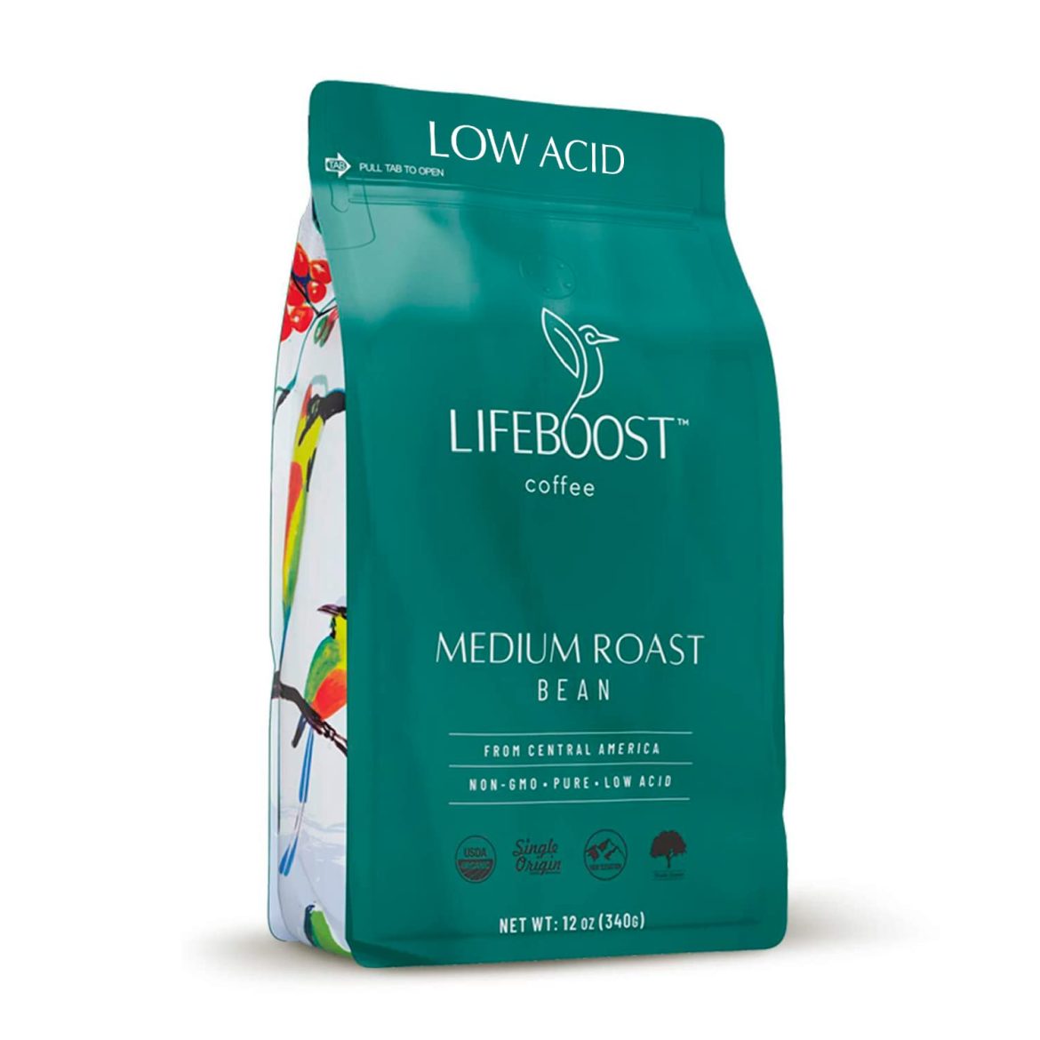 Lifeboost is the gold standard in low-acid coffee and our top overall pick. Their beans are shade-grown at high elevation in the mountains of Central America, hand-selected, sun-dried, and spring water washed. What sets Lifeboost apart is their TrustPure process: every batch is third-party tested for mycotoxins, heavy metals, pesticides, and over 400 other toxins. Their pH consistently measures 6.0 or higher — well above the average cup of coffee at 4.85. The medium roast delivers a balanced, smooth flavor that works beautifully whether you brew with a French press, drip machine, or espresso setup. Available in both whole bean and ground.