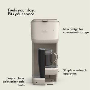 • BELLA Single Serve Coffee Maker, K Cup & Coffee Ground Compatible with Removable, Adjustable Drip Tray, Auto Shutoff & Reusable Dishwasher Safe Accessories, Brews 6oz to 14oz, 1000 Watt, Oatmilk