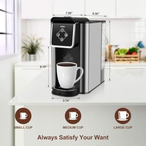 • 3-in-1 Single Serve Coffee Maker - Quick Brew for Coffee Pods, Ground Coffee, & Loose Tea, 6-10oz Cup Sizes, 50oz Removable Water Tank, 1150W, Compact & Efficient, Black