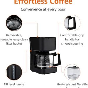 Amazon Basics 5 Cup Drip Coffee Maker, Coffee Machine with Glass Coffee Pot (0.8 Qt), Auto Shut-off, Auto Pause, Removable Filter Basket, Matte Black