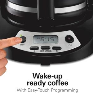 • Hamilton Beach 12 Cup Programmable Drip Coffee Maker with 3 Brew Options, Glass Carafe, Auto Pause and Pour, Black with Stainless Accents (46299)