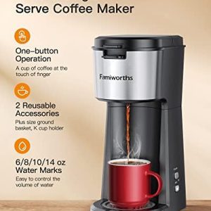 Famiworths Single Serve Coffee Maker for K Cup & Ground Coffee, With Bold Brew, One Cup Coffee Maker, 6 to 14 oz. Brew Sizes, Fits Travel Mug, Classic Black