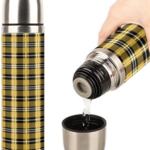 • Yellow Plaid Stainless Steel Vacuum Insulated Bottle Double Wall Thermos Flask Beverage Coffee Bottle Yellow Gingham Insulated Travel Mug with Cup for Hot And Cold Drinks 17 Ounce