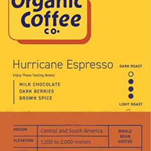 The Organic Coffee Co. Whole Bean Coffee – Hurricane Espresso Roast (2lb Bag), Medium Dark Roast, USDA Organic