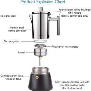 Easyworkz Diego Stovetop Espresso Maker Stainless Steel Italian Coffee Machine Maker 6Cup 10 oz Moka Pot Induction Espresso Pot