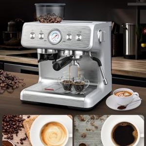 • COWSAR Espresso Machine 15 Bar, Semi-Automatic Espresso Maker with Bean Grinder and Milk Frother Steam Wand, 75 Oz Removable Water Tank for Cappuccino, Latte, Stainless Steel