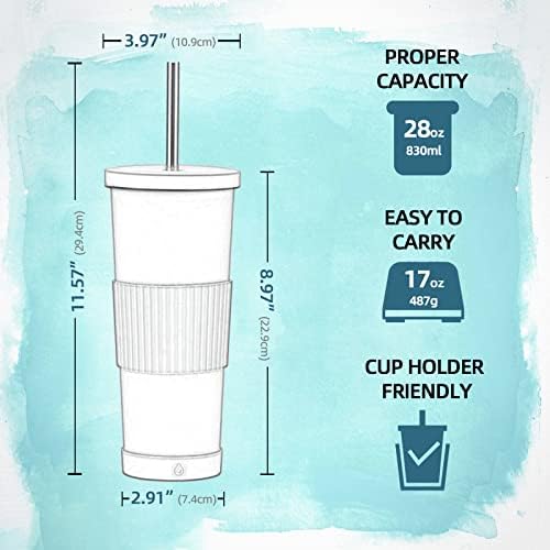 【Sweat-Free】This Double-wall Insulated Water Water Bottle With Straw Is Sweat-free, Keeping Your Drink Cold For Up To 24 Hours And Hot For Up To 8 Hours (depending On Ambient Temperature). The Tumbler With Straw Fits In Most Standard Cup Holders.