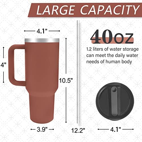 Rainbow series: 40oz tumbler with handle and straw, made of 304 stainless steel inside, frosted outside, feels silky, firm, rustproof, harmless to human health, and has no metallic smell. The interior is electropolished. The outer layer is coated with non-perspiring powder. Keep the tumbler dry and tidy. The longest 24 hours of heat preservation: we have tested in real objects, and under the environment of 20 degrees, the hot drinks are kept warm for 12 hours, and the cold drinks are kept warm for 24 hours. Ensure good heat insulation. No matter which season you are in, you can enjoy your favorite hot and cold drinks for a long time. Portable large-capacity car cup: Whether you are driving to work or traveling, the tapered slender base design of our insulated coffee cup makes it perfectly fit in most cup holders, so you can keep your favorite drink at hand when you go out. Anti-leakage device: The cover with thread and rubber ring can prevent liquid leakage or lid ejection. Please tighten it firmly when using. Our coffee travel cup is designed to prevent overflow when bumping or jogging on the road. Suitable for family and outdoor: suitable for swimming, sports, travel, road travel, barbecue, camping, party, etc. You can share them as gifts with family, friends, teachers, colleagues and sisters on birthdays, Thanksgiving and Christmas