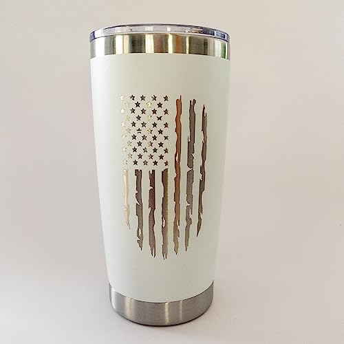 20oz Stainless Steel Coffee tumbler with engraved design that does not fade or wash away.