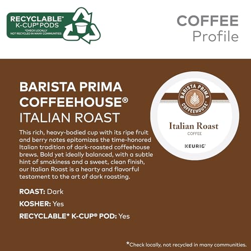No filters or loose coffee, just pop it in and brew. Product is Kosher. Gourmet coffee Keurig K-Cup pods. Italian roast coffee.