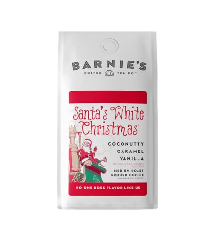 Christmas is served. First introduced as a Barnie’s Coffee holiday blend in 1995, Santa’s White Christmas quickly became a year-round best seller. This festive brew combines coconut, sweet caramel, vanilla and nutty flavors to satisfy your craving for something smooth, rich and wonderful. After all this time, This aromatic, tasty cup is still unforgettable.