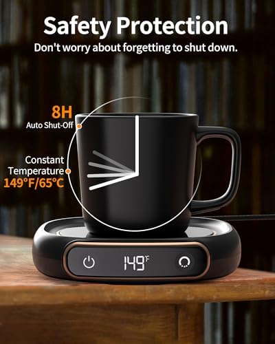 【SAFETY & EFFICIENCY】 Mug warmer features an automatic shut-off function that activates after 8 hours of continuous use, ensuring peace of mind and safety. Its low-power design keeps your coffee or tea warm efficiently, making it ideal for long work sessions or extended relaxation periods. Additionally, the anti-slip bottom provides stable placement on various tabletops, enhancing overall safety