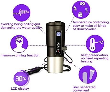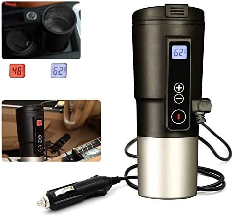 🍵 Safe use-This is a new type of smart mug. It can be taken out from the 304 stainless steel cup and rinsed with running water. After drying, it can be installed back. It avoids the external circuit chip touching the water and is safer to use. When the water volume is too small or the cup is tilted, the car heating mug will automatically close .Heated coffee mug for car is quiet and no noise when heated.
