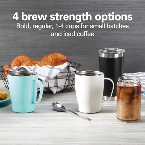 ULTIMATE BREWING CONTROL: The brew strength selector has 4 options: bold, regular, 1-4 cups for small batches, and iced coffee. The blue-backlit programmable clock is easy to see and can be set up to 24 hours in advance for wake-up ready coffee.