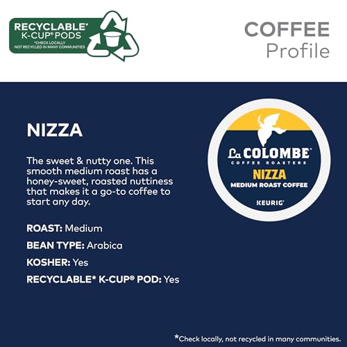La Colombe® Nizza is a smooth medium roast masterpiece that’s a go-to coffee to start any day. Named after the city of Nice, France — home to some of the best honey in the world — this coffee hits at the heart of sweet, exemplifying a honey-sweet, roasted nuttiness that serves as a delicious homage to its namesake. More than just a longstanding favorite, this pioneering roast was the first coffee ever made by La Colombe®. And since 1994, it’s held a special place in the hearts — and cups — of coffee lovers everywhere. At La Colombe®, we’re driven by one calling — to change the world by making people happy through coffee. That’s why we responsibly source our beans from the world’s preeminent growing regions, give back to our local and global communities, and care for our environment. It’s our way of making meaningful change in the world and filling every cup with exceptional coffee. Each La Colombe® Nizza K-Cup® pod is filled with freshly ground coffee beans and is compatible with all Keurig® single serve coffee makers. Simple. Delicious. And recyclable.* Enjoy the same great-tasting coffee you know and love, and when you’re done, please peel, empty, and recycle. *Check locally, not recycled in many communities.