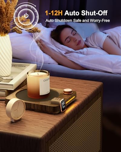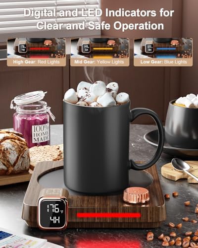 Digital Display and Safety: The mug warmer features an LED indicator light and an LED temperature display to prevent accidental contact during heating. It also has a 4-hour automatic shut-off and a customizable 1-12 hour timer for safe and convenient use.