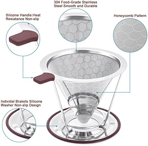 【ECONOMIC & ENVIRONMENTAL FRIENDLY】Tired of paying for over priced disposable coffee filter papers again and again? Purchase our reusable pour over coffee filter once, at least 500 times you can use, less paper, less money, more tree.