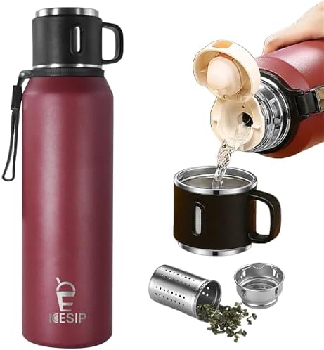 ☕【HOT AND COLD WATER BOTTLE】: Our Vacuum Insulated Water Bottle is the perfect everyday travel mug for your hot & cold beverages. Designed with high-quality 316 stainless steel, this tea & coffee bottle will maintain your beverage’s temperature for up to 12 HOURS! Additionally, Thermos hot drinks comes with a cup for easy drinking, adding to its versatility.
