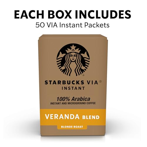 PREMIUM INSTANT COFFEE: Starbucks delivers the fresh-tasting roasted coffee you love with this 50-count box of Starbucks VIA Instant Veranda Blend Coffee—easily stir up your next favorite cup with these individual coffee packets