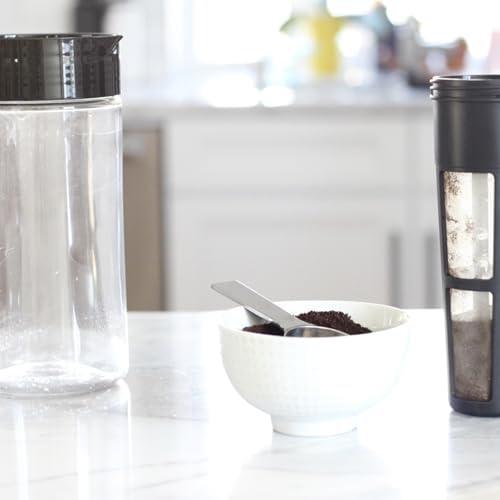 The Fine-Mesh Coffee Filter in this cold brew coffee maker keeps grounds out of your freshly brewed pot – differing from other coffee machines. Tritan plastic withstands hot temperatures if you want a hot cup of coffee. Fits in most refrigerator doors