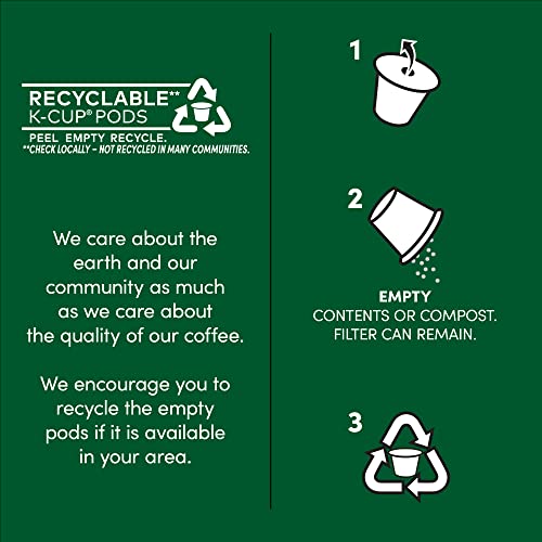 Doing Our Part: We care about the earth and our community as much as we care about the quality of our coffee. We encourage you to empty the grounds of your used pods and recycle them if it is available in your area.
